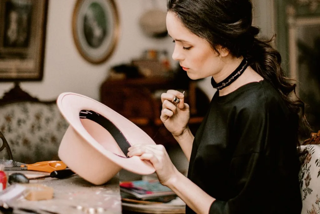 Евгения делает шляпки из фетра и соломки, ее работа является штучным хендмейдом. В свободное время она едет на блошиные рынки – в поисках вдохновения и старинных шляпных колодок. И часто делает шляпки канотье для клиентов – они ассоциируются с Парижем и Францией.